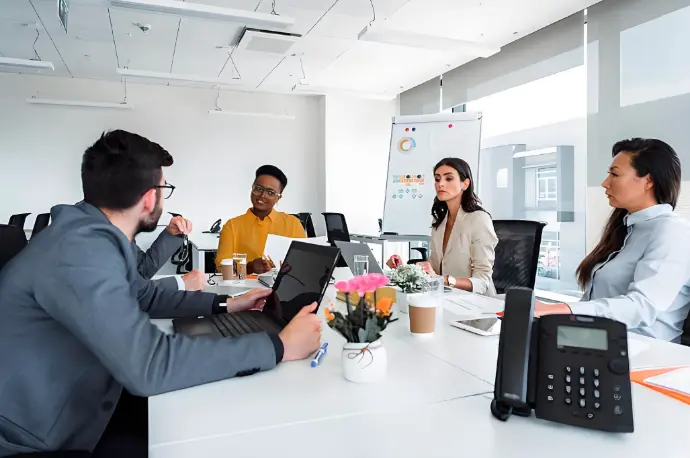 两个嵌套的“V”字体现紧密协作; 动态斜杠则传递出对速度与时效的极致追求